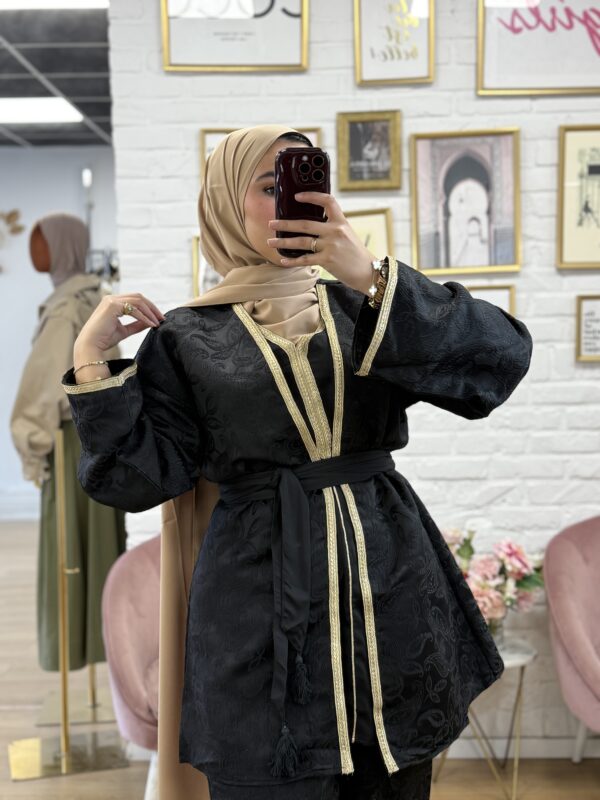 • Ensemble 3 pièces composé d’une veste, d’une tunique, d’un pantalon et d’une ceinture